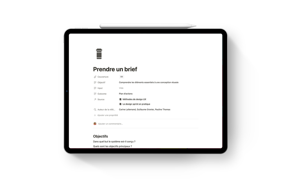 Ce template Notion est un guide pratique pour prendre un brief de manière efficace et structurée. Il fournit une liste détaillée de questions à poser pour comprendre les objectifs, les cibles, les contraintes et les attentes du client ou du projet.